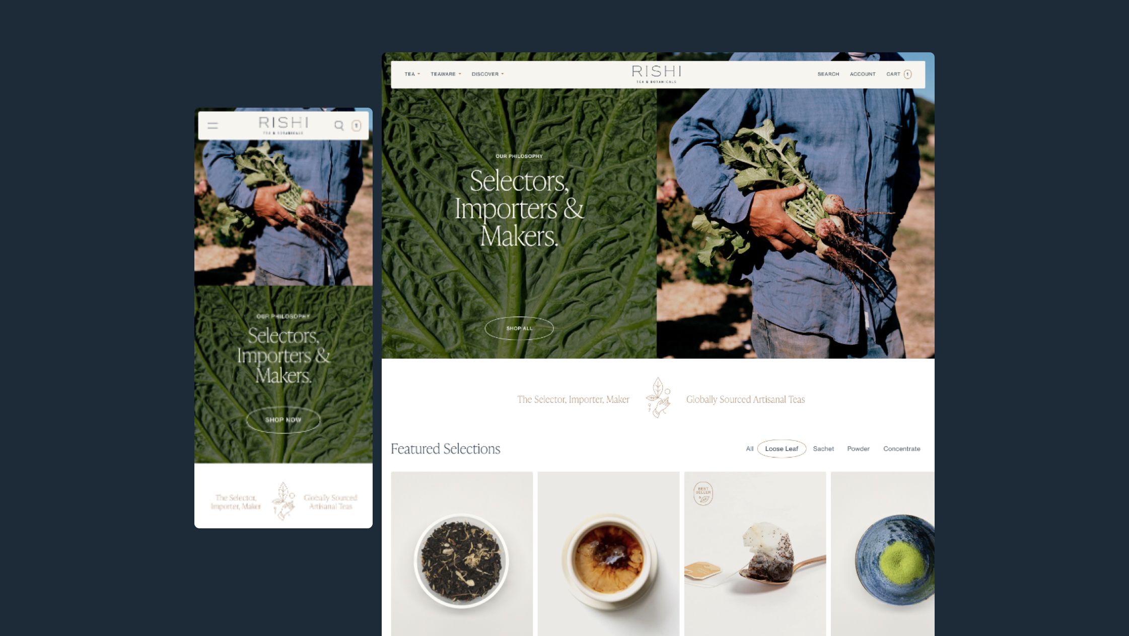 The Rishi brand was recently refreshed in its packaging system, but was still behind in its digital expression. Our goal was to translate the quiet, beautiful IRL experience of Rishi onto the web.